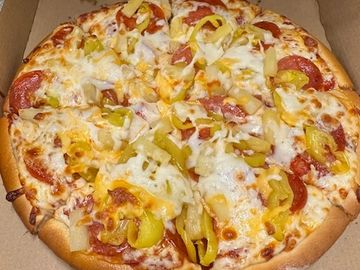 three-cheese blend, Pepperoni, banana peppers & pineapple