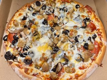 three-cheese blend, pepperoni, Italian sausage, black olives & mushrooms