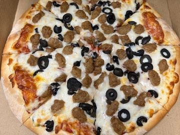 three-cheese blend, Italian sausage & black olives