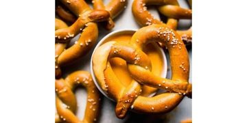 Salted pretzel served with
